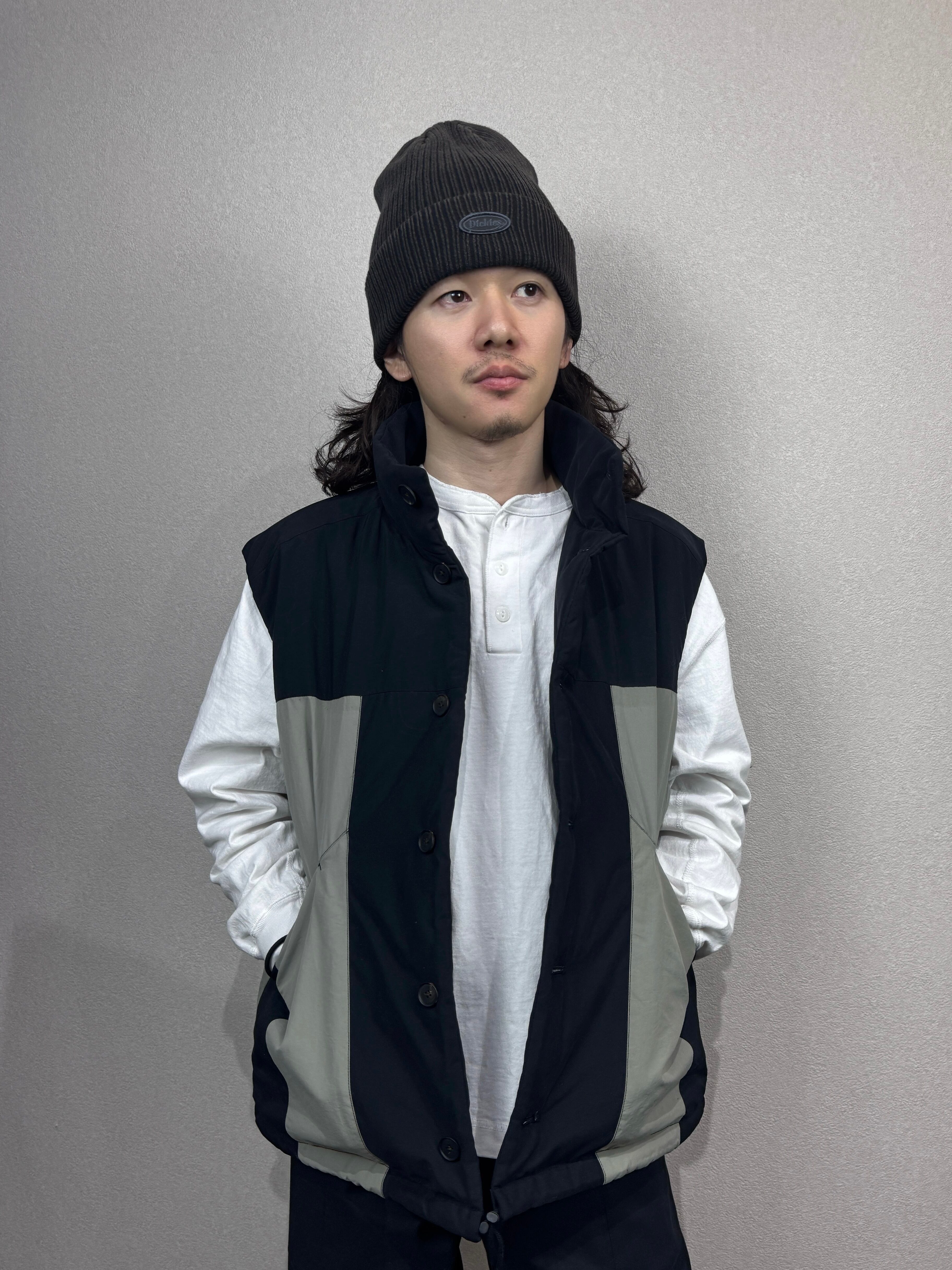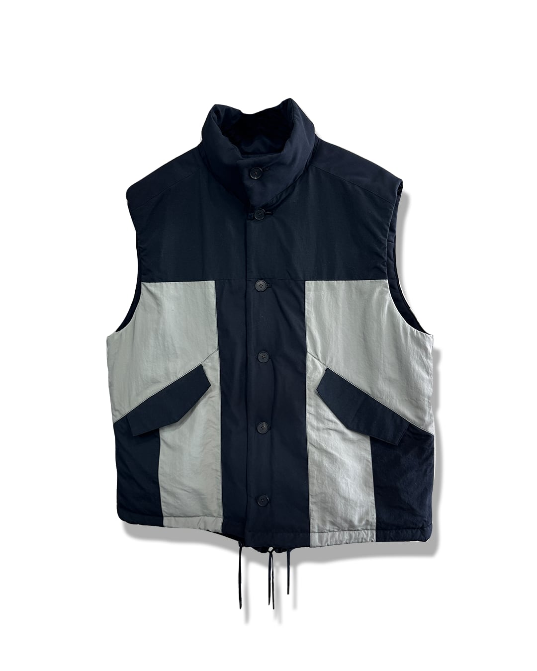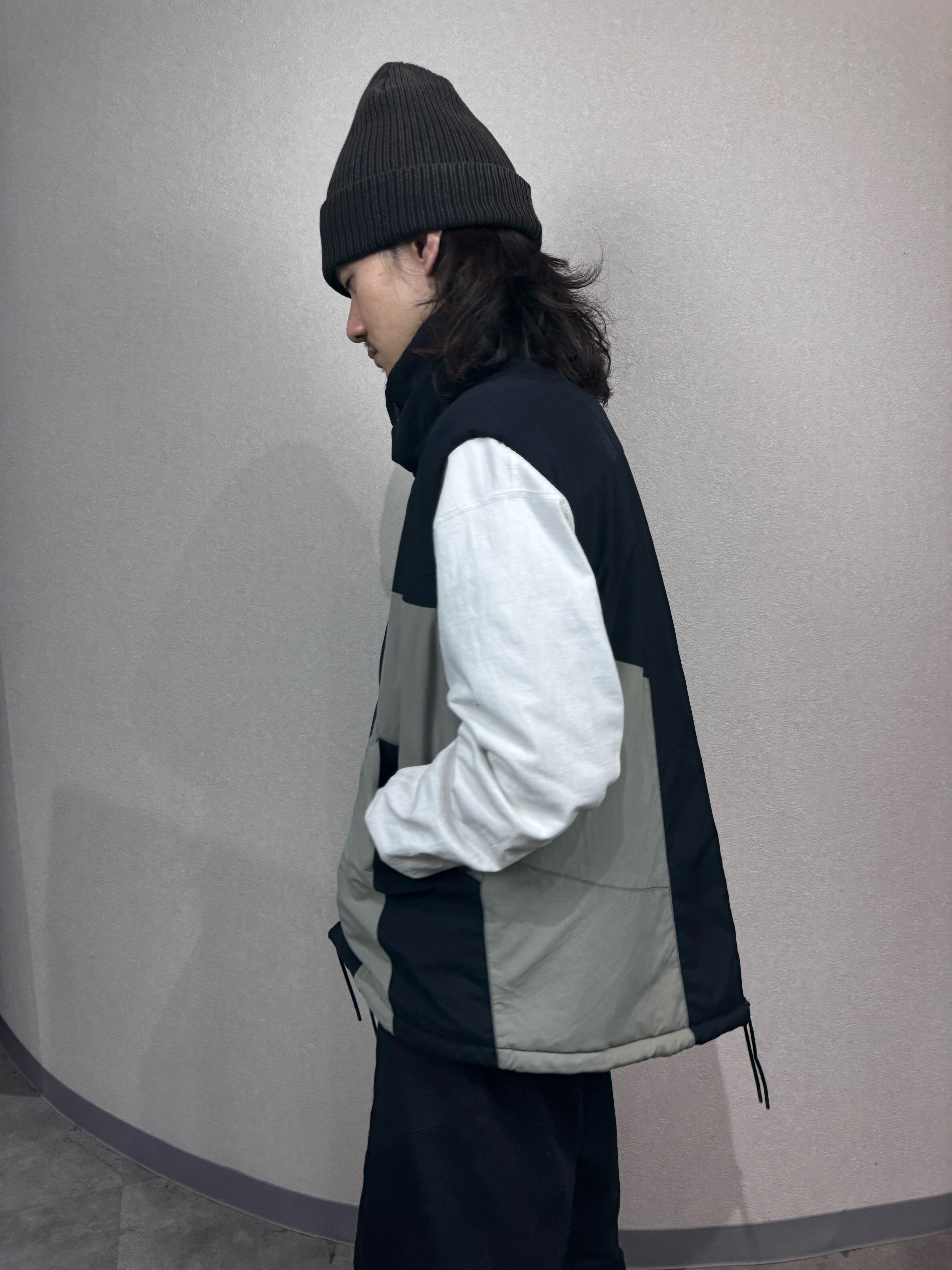 モッズコートのディティールであるフィッシュテールをデザインに取り入れた中綿ベスト。